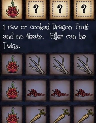 1火龙果3填充物,可以是树枝不可以是肉,这是非常好的食谱,搭配自由,保质期长,属性高,有一定的升温效果