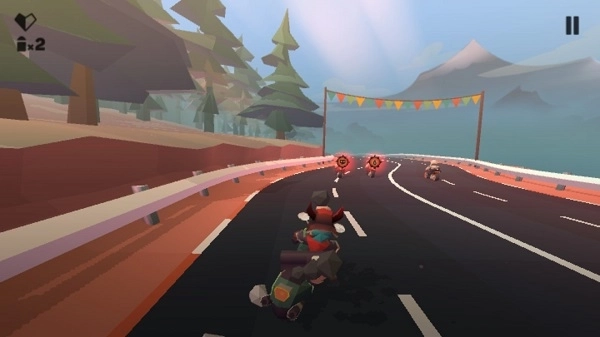 1、体验卡通3D摩托驾驶的畅快,还融入了震撼的射击玩法,你可以在道路上尽情驰骋,消灭恶魔的爪牙;