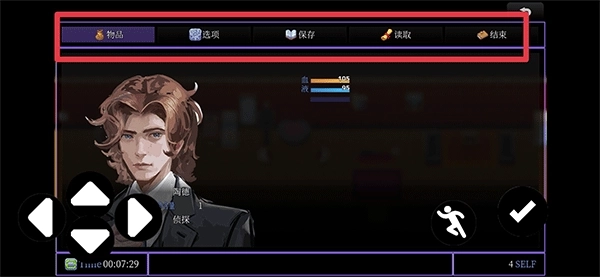 2、进入游戏后,左侧的操控盘用来控制角色移动,右侧的按钮对应奔跑与调查功能,而右上角的图标则是菜单栏入口。