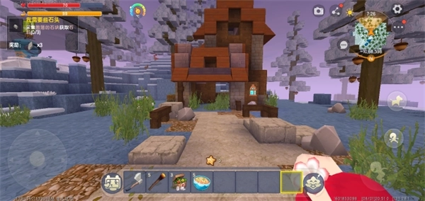 2、我们点击创建冰原冒险,进入后会有介绍内容,可根据需求选择查看或跳过;若点击跳过,便会直接出现在冰原附近区域,这里能看到一座小房子,同时屏幕左上角会显示若干任务目标,完成这些任务即可获取对应的奖励。