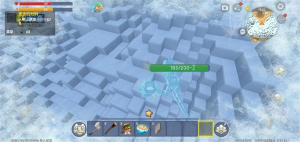 3、我们朝着冰原深处不断前行,很快就能找到冰原村庄。更新后的冰原还新增了不少动物呢——有活泼可爱的兔子,主要有白色和棕色两种;还有大小不一的牦牛;另外也会遇到冰冻人,击败它们后能获得其手中的武器,用这武器攻击其他动物,就能将对方冰冻住。