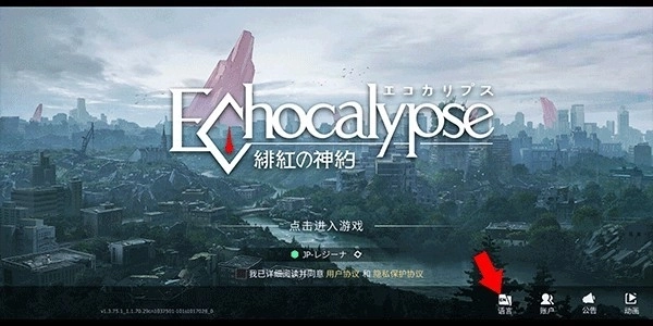 3、要是在上一步没能正确选择语言,等进入游戏登录界面后,可在右下角点击语言选项进行调整。