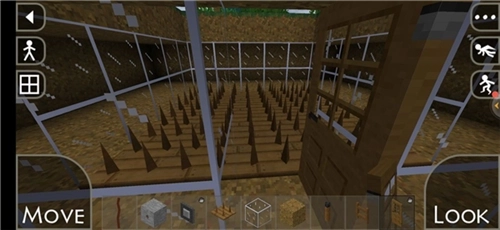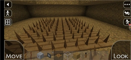 7、这就是制作完成的陷阱,在家门口设一个,再连接到屋内。白天用肉引诱狼进来,等月圆之夜狼变成狼人时按下按钮,刺钉就会弹出,刷钻石轻松得很。