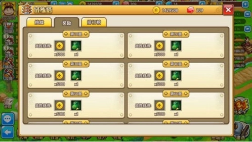 5、每10层会有金币和宝石奖励。每天能免费领取一次从第1层到当前层的全部奖励,此外还可以用红钻再领取一次。