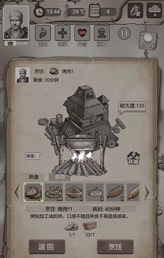 10、回到家后,要是浆果吃完了,就可以做些烤肉。烤肉能以较低成本将不适宜直接食用的生肉转化为可食用的食物,在研发出相关科技之前,它比那些消耗两根木材的烤素食要实用得多。