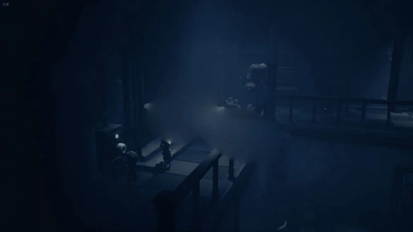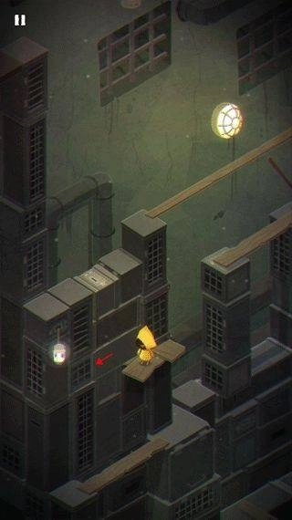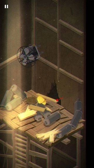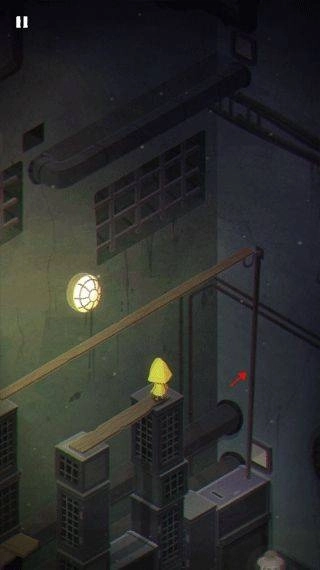 1、游戏开场时,摩诺借助门来抵挡外部的攻击。进入第一关后,他得按下上方的拉杆,这样才能让自己落到一个类似篮子的区域里。