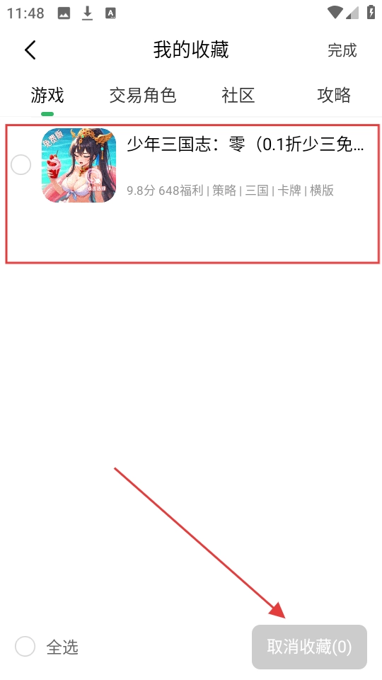 进入编辑模式后,我们可以选择想要取消收藏的游戏,接着点击【取消收藏】按钮,这样就能取消对该游戏的收藏了。
