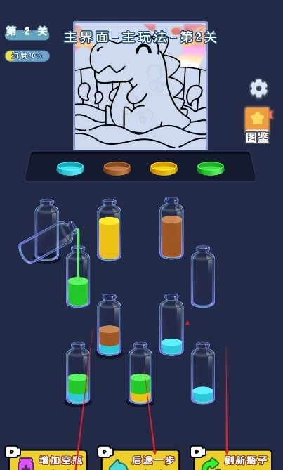 操作使用步骤:在关卡界面找到道具栏,点击要使用的道具图标。使用“颜色提示”时,点击后屏幕会自动标记可配对的液体;使用“额外步数”时,点击后直接增加对应步数;使用“消除喷雾”时,点击道具后再点击目标液体位置就能完成消除。使用后道具数量会相应减少,建议在关键时刻合理使用。