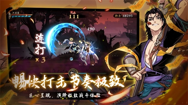 乐声起,寒光落,镇魂音荡妖魔散。玩家需跟随音乐节奏点击屏幕,操控角色战胜敌人,融合传统音游与动作游戏的特色,带来全新的音游玩法体验。