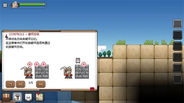 3、持续点击方块可将其破坏,若想通过长按方式破坏方块,可在主菜单中开启长按破坏功能。