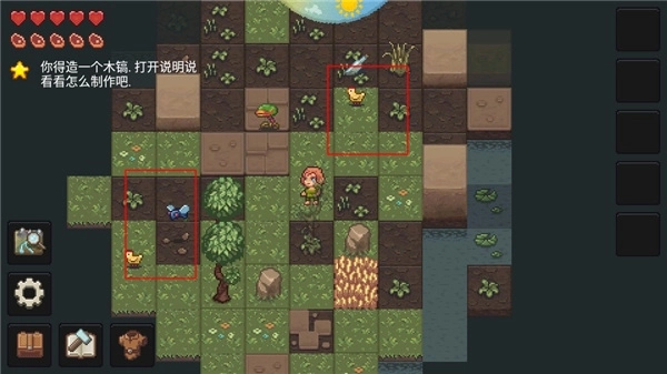 5、铲子的功能是铲土,黑色土和黄色沙这两种方块,按住后可以进行挖掘操作;不过挖草坪时铲子会消失,这一现象疑似存在bug。锄头的用法是按住黑色土方块挖掘,之后就能用于种植,像小麦、樱桃这类作物都可以种。而树等种子,同样是按住方块进行种植,这样做有助于保护环境。