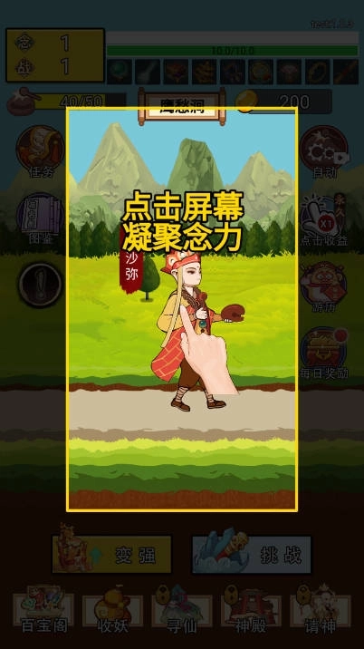 1、玩家需持续点击或执行其他操作,以提升取经四人组(唐僧、孙悟空、猪八戒、沙僧)的能力。随着能力升级,他们的攻击力、防御力与生命值会得到增强,进而能更顺利地战胜一路上遇到的妖怪BOSS。