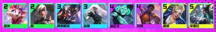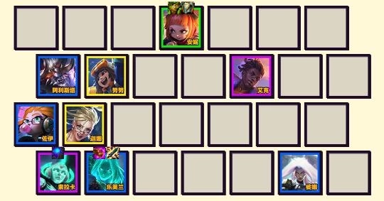 1、阵容组成:安妮、佐伊、乐芙兰、阿利斯塔、娑娜、艾克、索拉卡、迪迦、努努