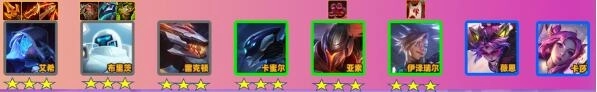 1、阵容组成:艾希、布里茨、雷克顿、卡蜜尔、亚索、伊泽瑞尔、薇恩和卡莎