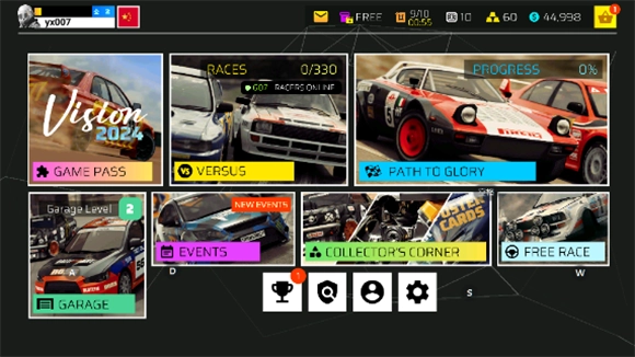 1、游戏中并没有直接解锁全部车辆,需要玩家自己使用货币购买,点击game pass进入比赛。