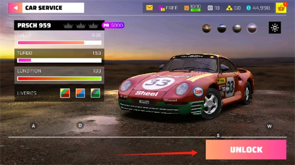 2、选择自己喜欢的车,点击右下角的unlock解锁购买。