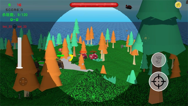 4、瞄准射击操作需点击右侧的瞄准键,跳跃动作则通过点击跳跃键完成;