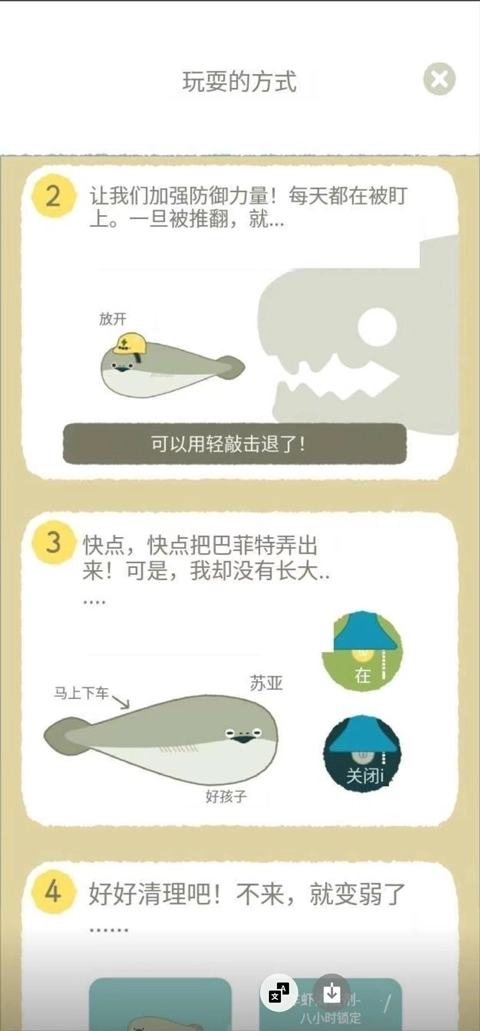 3、之后是加强鱼的防御力量,一旦防御不住可能被推翻,我们可以用轻敲击击退鲨鱼。