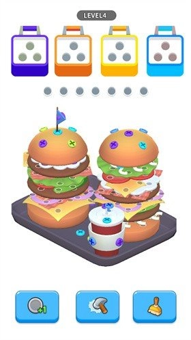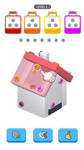 2、借助各类工具,从多种颜色里挑选合适的,把螺丝抽出或是拧紧就能顺利通关。