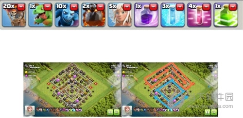 2、要是阵型外围存在非对空防御建筑,可利用气球兵以较低成本将其清除,同时还能发挥断边的效果。