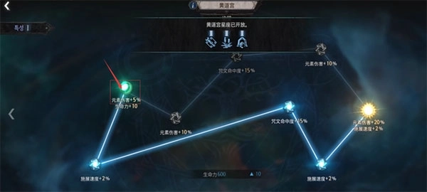 目前黄道宫仍有6个开放的星座群,玩家能够通过解锁不同星座群获取相应的力量。这便是决定每位玩家技能发展方向差异的特性点,特性点是玩家达到10级后,每提升一级就会获得1点,玩家可在星座群中进行分配。