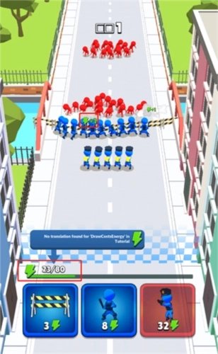 4、接着点击游戏下方的士兵来抵御敌人的攻击,每召唤一个士兵都需要消耗一定的体力;