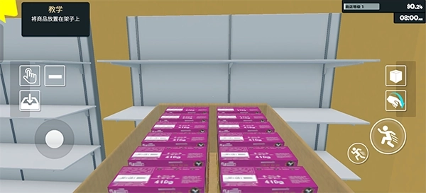 5、在架子附近,我们连续点击两次小手图标,就能把商品放置到架子里面了。