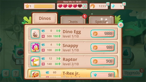 游戏里可供玩家召唤作战的恐龙种类多样,卡通化的美术风格将为你带来别具一格的闯关感受
