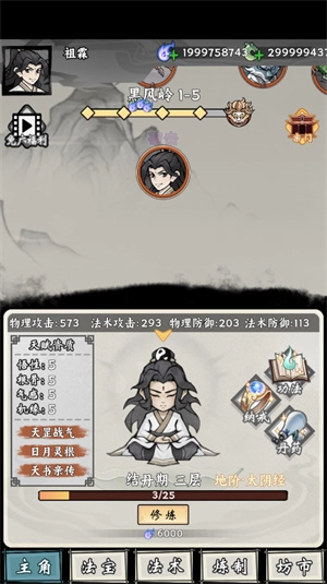 积攒够足量的灵气后,点击修炼按钮就能完成进阶,进而提升自身的id属性与功法等级。