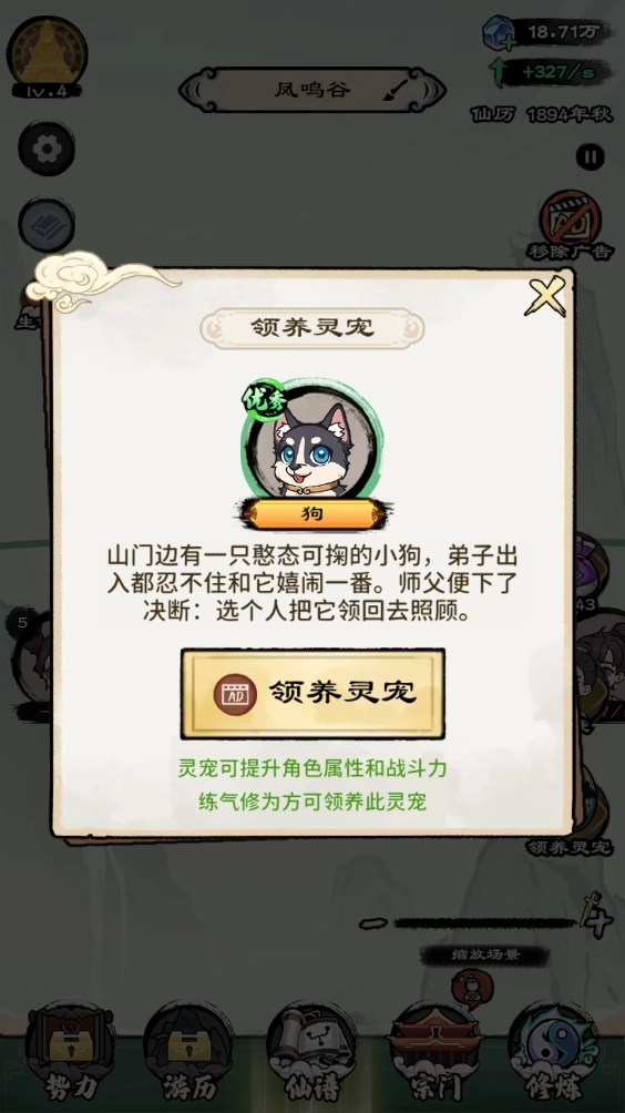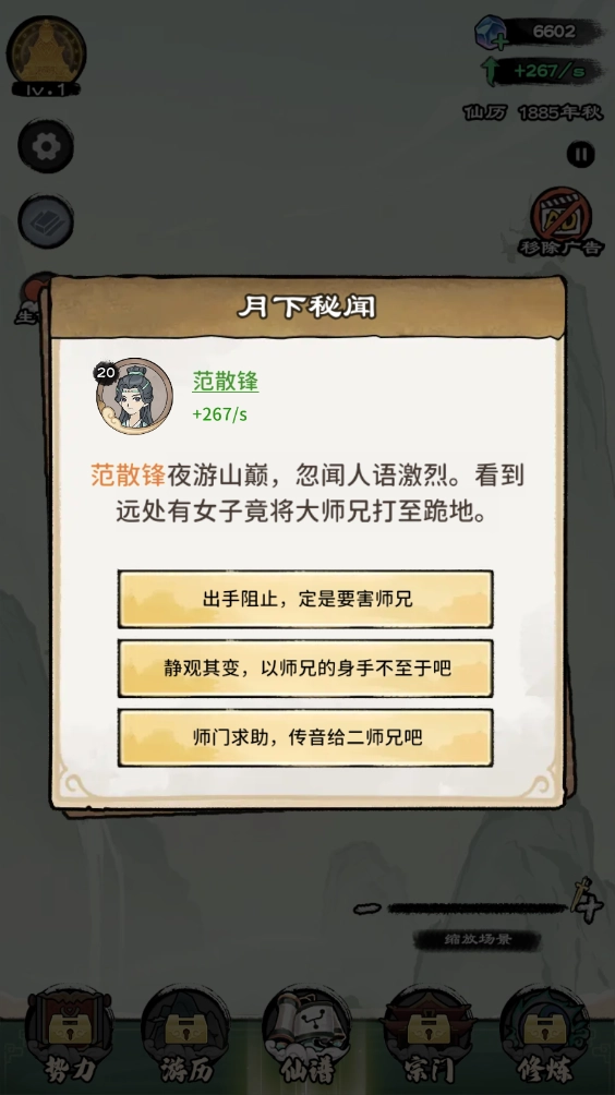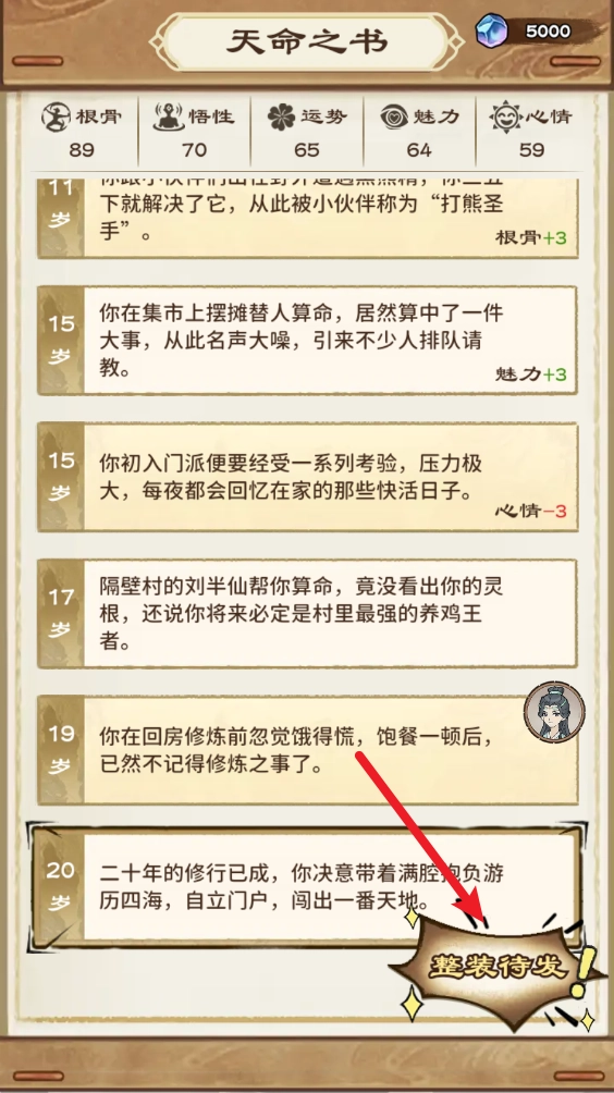 在修炼过程中,会随机出现各种时机,针对这些时机做出不同的回应,会导向不一样的结果。