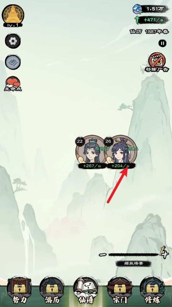 进入修仙界面后,我们便会开启修炼进程,界面中会呈现出自身的修炼速度。