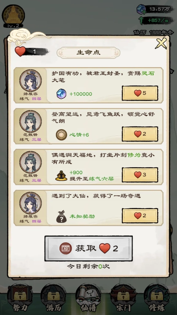 在修炼的过程中,还能获取生命点,这些生命点可用于兑换各式各样的奖励。