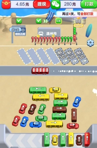 每日发财是一款挪车玩法的休闲游戏,玩家需要移动车辆,让对应颜色的小人顺利上车。游戏内设有众多关卡,每一关都有不同数量的小人等待运输,还有各种颜色的车辆可供点击挪动。有趣的玩法能带来多样体验,快来不断闯关,感受全新乐趣吧。