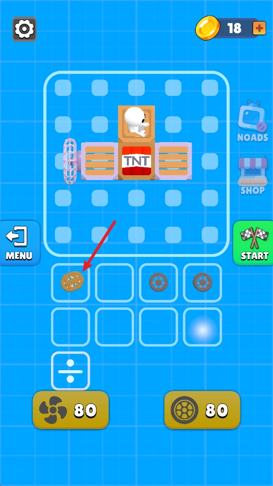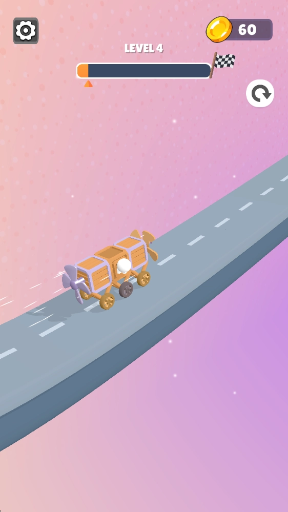 汽车组装完成后,我们就能进入场景开始挑战了,点击屏幕就能让风扇运转,为前进提供动力。