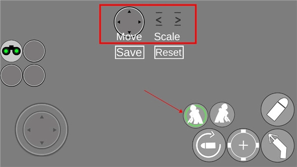 进入后,点击操作图标,若显示绿圈即表示该图标已被选中,随后点击上方的按钮就能进行更改;其中,轮盘用于控制位置,箭头则用于控制图标大小。