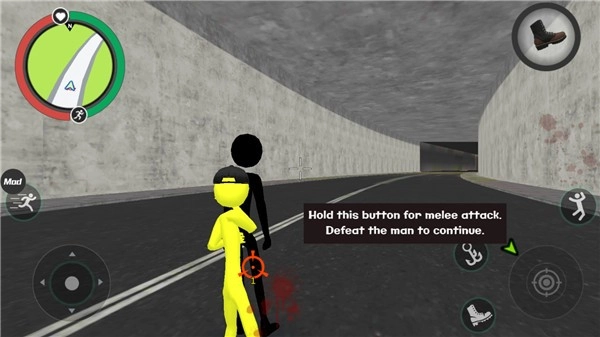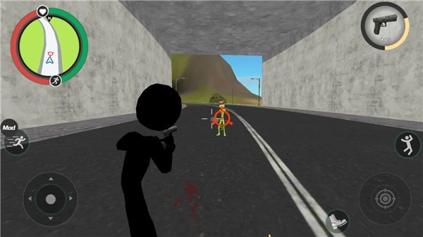 左侧可操控移动与加速,右侧对应绳索、攻击(含跳跃功能)及跳跃键位;右上区域的武器切换、血量与经验值显示均实时更新,状态信息一目了然。玩家可自由选择玩法策略,与其他帮派角色展开交火对抗——击杀敌人能积累经验,连续击杀会提升通缉星级,届时警察与周边角色将对你发起猛烈追击。在此过程中,如何维持生存并成功消灭对手,便是你需要达成的核心目标。