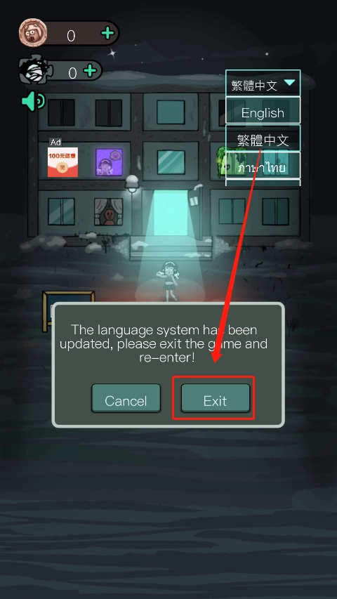 切换成功后会出现下图所示的提示,此时我们需要重启游戏来使语言替换效果生效,点击下图所示的位置也能快捷关闭游戏。