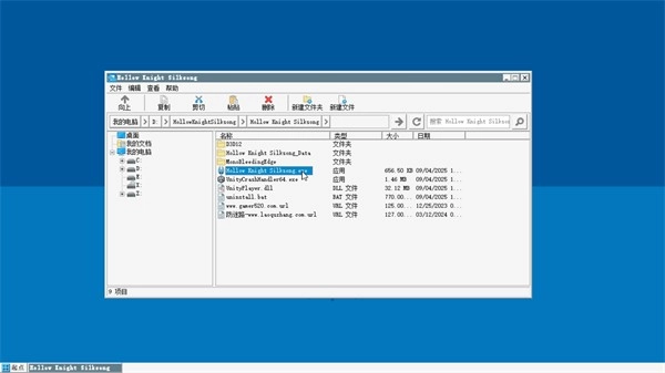 解压完成后,回到你之前保存文件的目录,找到并选择“HollowKnightSilksong.exe”程序。