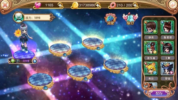 从界面右侧的标签能够看出,叶罗丽按照攻击、防御、治疗、辅助这四种职业定位对角色展开了分类。