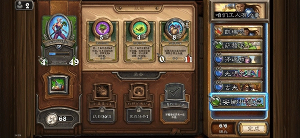 这套阵容中,凯瑞尔是初始赠送的铁三角成员之一,光明之翼来自预约活动的奖励,剩下的四个英雄则都是我开八包卡牌时获得的。