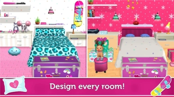 芭比梦幻屋冒险(BarbieDreamhouseAdventures)是一款以芭比娃娃为主的模拟经营。玩家在游戏中可以建造、设计和装饰自己的芭比梦幻屋,还可以体验芭比与她的朋友、姐妹们的日常生活。芭比梦幻屋冒险最新版以充满活力、时尚且高度自由的定制系统为特色,通过大量的迷你游戏、派对活动和社交互动,为玩家打造了一个积极向上、充满想象力和创造力的虚拟世界。
