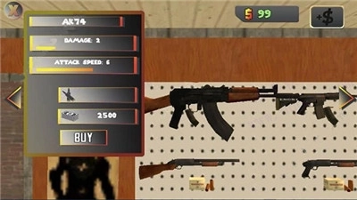 6、每种武器我们可以看到名称、伤害、攻击速度,子弹,价格,比如说AK74需要2500美金;