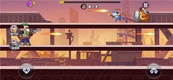 1、集合动作射击、横版跑酷、闯关挑战多种玩法;