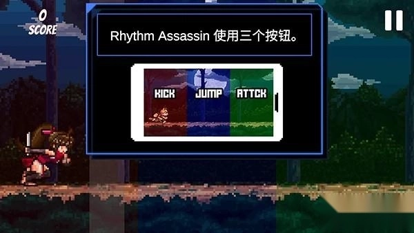 核心操作划分为左(KICK踢腿)、中(JUMP跳跃)、右(ATTACK攻击)三个区域,玩家要精准跟随背景音乐的节拍按下对应的按键。攻击、跳跃、踢腿这些动作都得卡在节奏点上完成,要是按得太早或者太晚,就会让动作失去效果,甚至使角色受到伤害,而“节奏感”也由此成为了生存的核心能力。