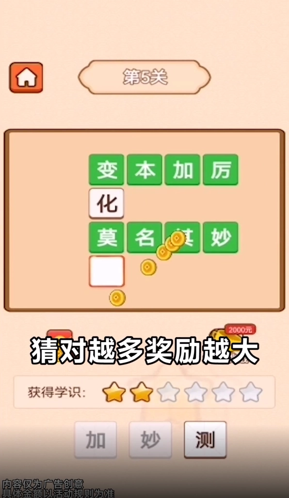 脑洞猜猜猜是一款能赚高佣金的答题游戏。满0.3元就能提现,答对一道成语题奖励0.9元,而且可以随时提现!不用邀请好友,没有任何套路,也不需要复杂的提现流程,用全新的思维方式去挑战谜题,尽情开发你的脑洞疯狂解谜,不断攻克谜题关卡,努力成为脑洞王者吧。
