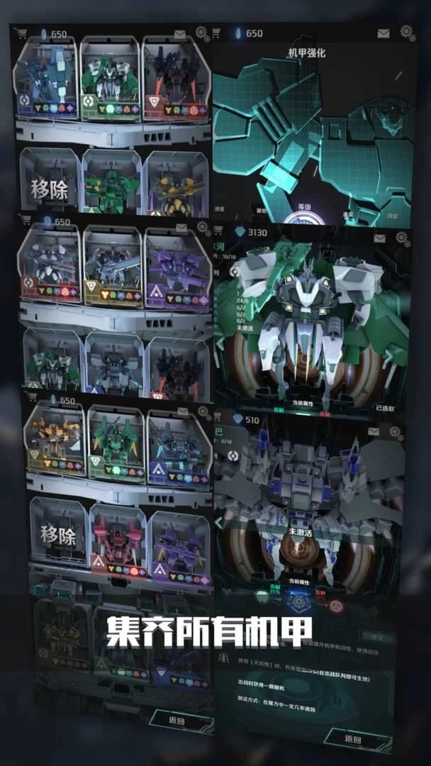 可以自由组合机甲阵容出战,选择合适机甲上场闯关。