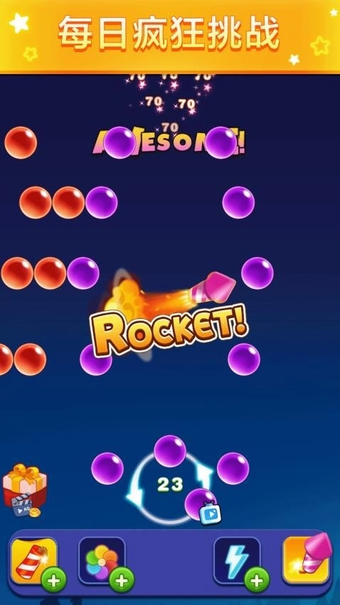3、巧妙运用特别的泡泡弹珠,能触发炸弹、彩虹、时刻等多种不同效果,且不会产生任何问题。