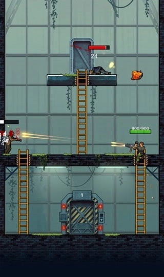2、按照上方的提示,滑动屏幕来控制角色移动并射击袭来的僵尸,最终到达电梯就可以了。