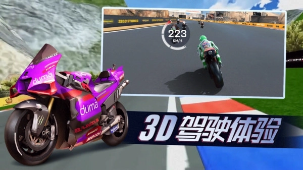 1、来体验全新的3D摩托车模拟驾驶游戏吧,感受顶尖3D引擎技术所呈现的极致视觉享受。
