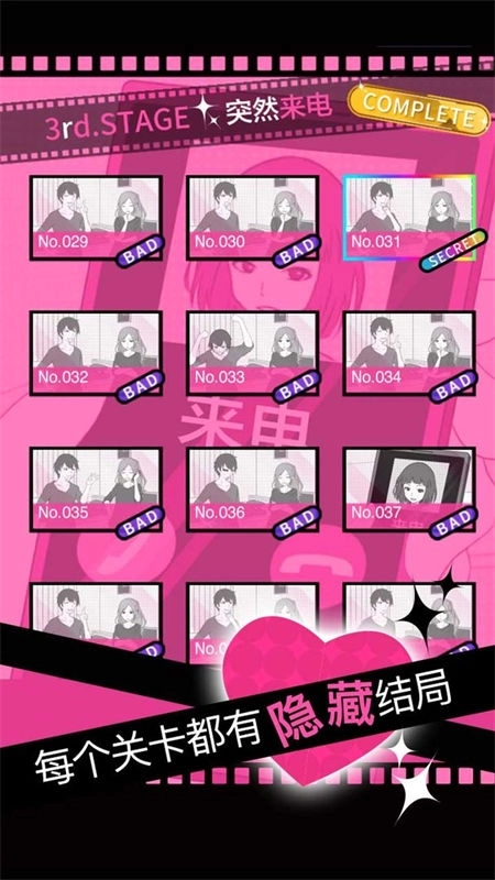 《分手回避》是一款融合了趣味、策略与情感元素的休闲解谜游戏。在游戏中,玩家将化身恋爱中的男主角,当女友因察觉到外遇的蛛丝马迹而发起一连串质问与怀疑时,需凭借智慧与巧妙的言辞来化解一次次危机,竭力避免恋情走向终结。游戏通过丰富的剧情脉络与多样化的场景设定——比如日常通话、浪漫约会、重要纪念日等,让玩家在紧张又充满挑战的解谜过程里,深切体会恋爱关系中的微妙变化与复杂纠葛。值得一提的是,玩家做出的每一个选择都将左右故事的发展方向,而游戏更准备了上百种不同结局,等待着玩家去逐一探索发现。